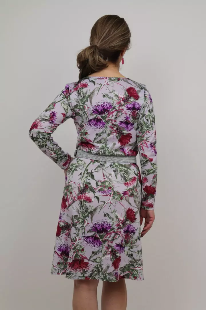 Ezt a tavaszi ruhát egy puha, vékony kötött anyagból varrtam, ami kétirányban is rugalmas. Nem készítettem hozzá külön mintát, hanem két meglévő IdaStyle szabásmintát kombináltam össze, kis módosítással.